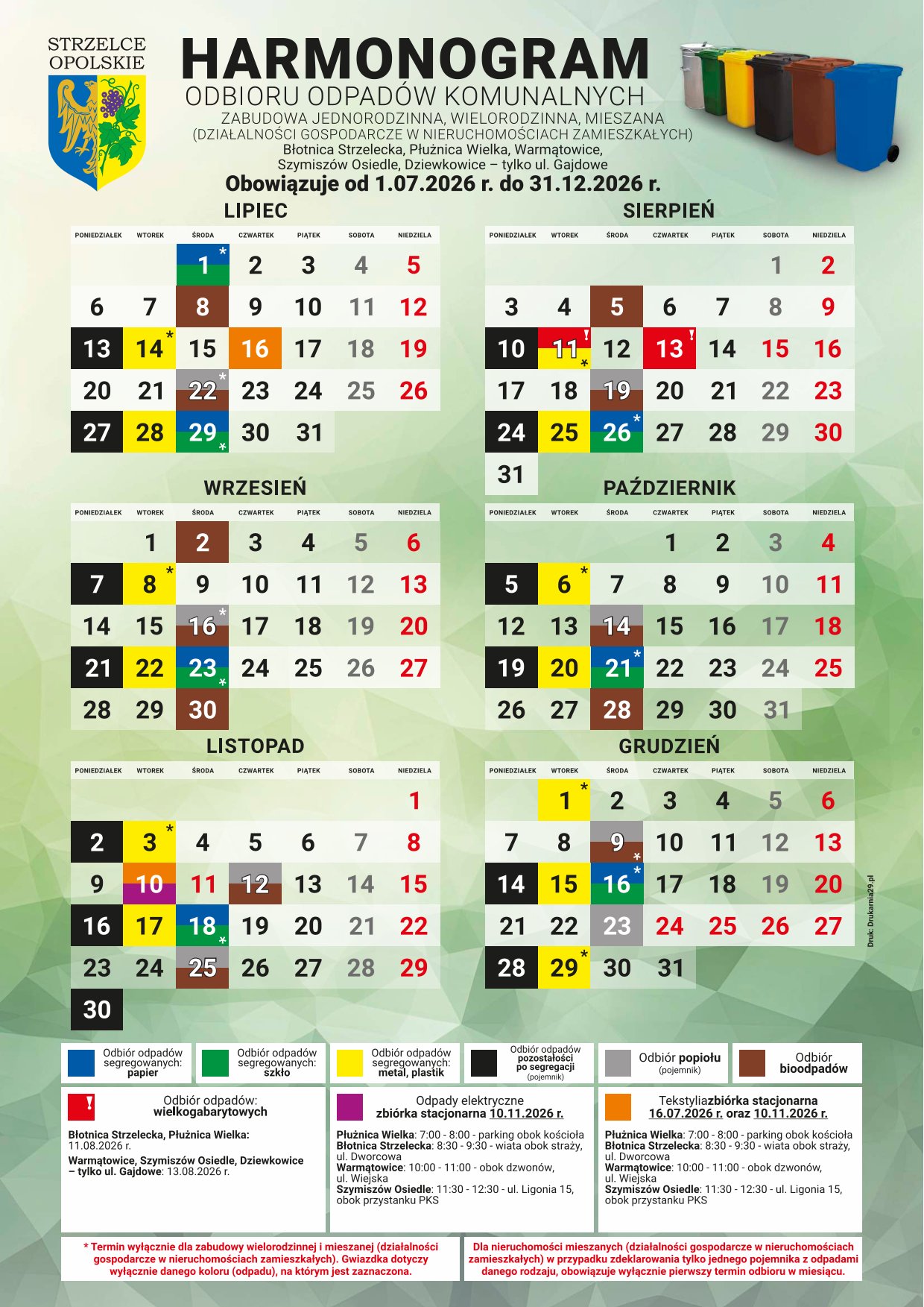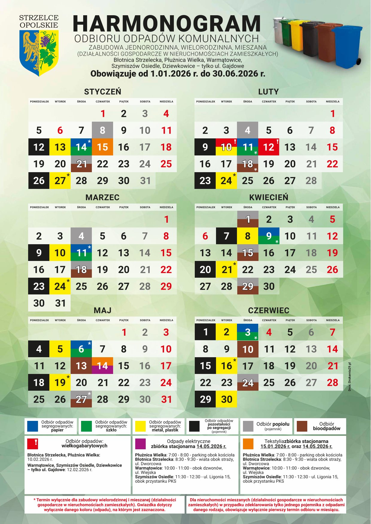 Harmonogram odbioru odpadów komunalnych na 2026 rok